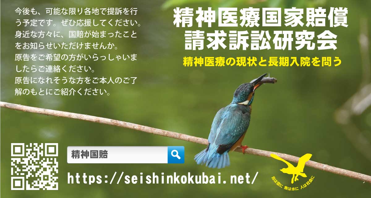 権利擁護システム研究会の古屋龍太さんの講演からこの取り組みを知りました。古屋さんは精神医療国家賠償請求訴訟研究会(以下、国賠研)の事務局長として、国賠研を支えています。この国賠研が伊藤さんをバックアップしています。私もささやかですが、会員になり活動させていただいています。