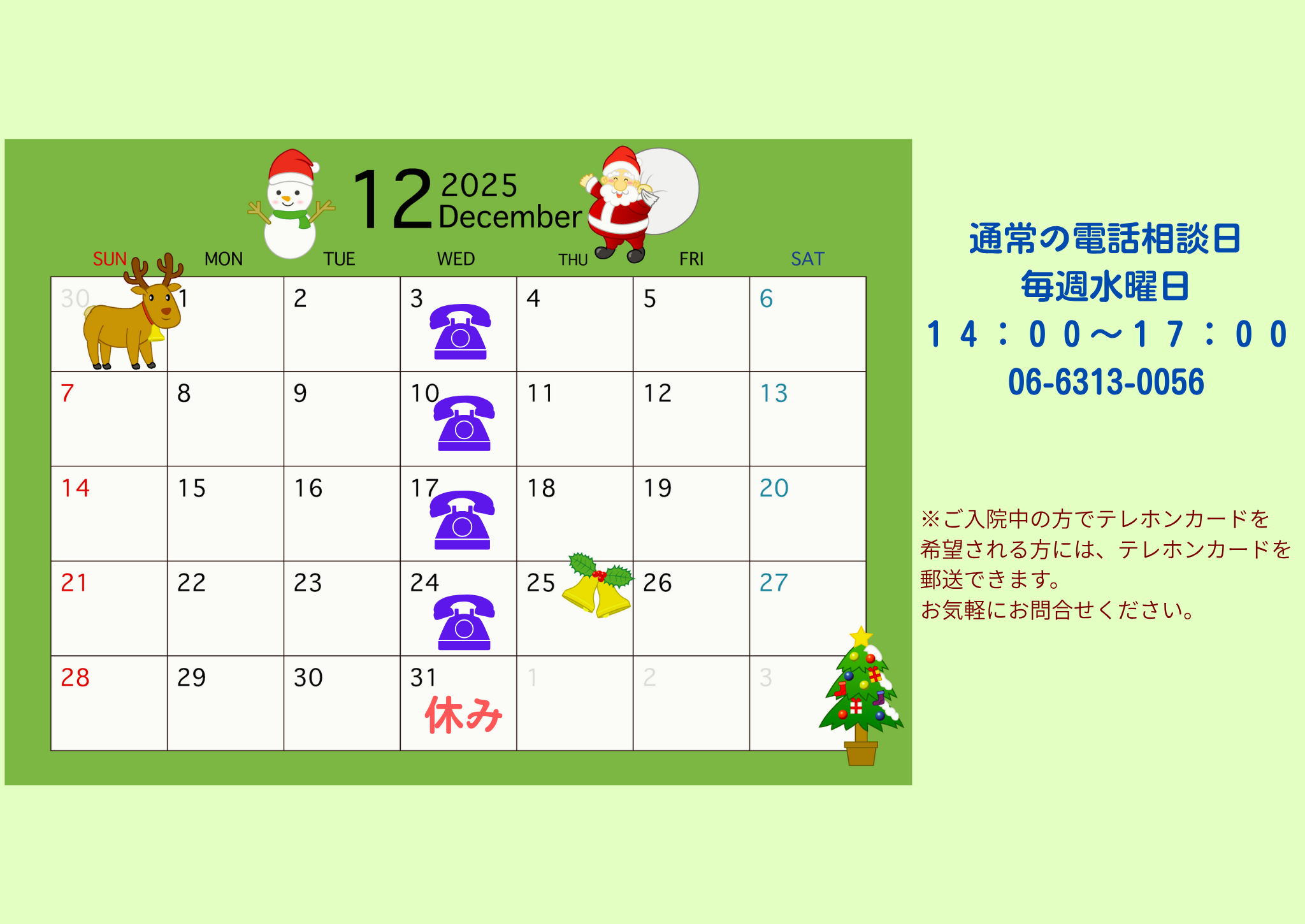 12月31日の大晦日は相談はお休みとなりますので、お気をつけください。