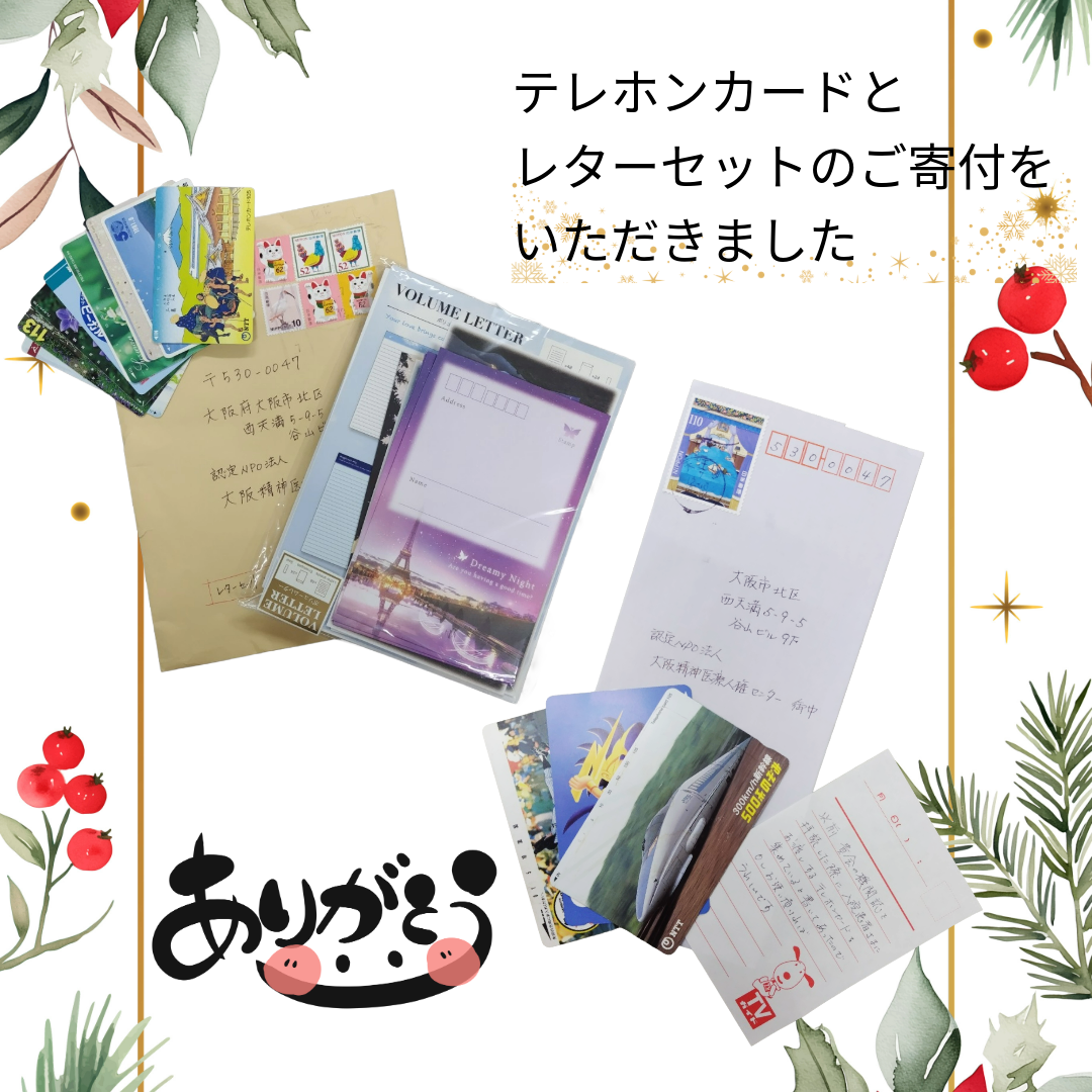 年末のお忙しい中、テレホンカードとレターセットのご寄付を郵送にてお送りいただきました。