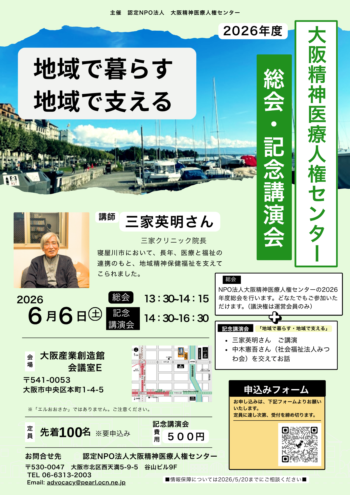 | テーマ | 認定NPO法人大阪精神医療人権センター 2026年度定時総会・記念講演会 「地域で暮らす 地域で支える」 <定時総会> <記念講演会> |