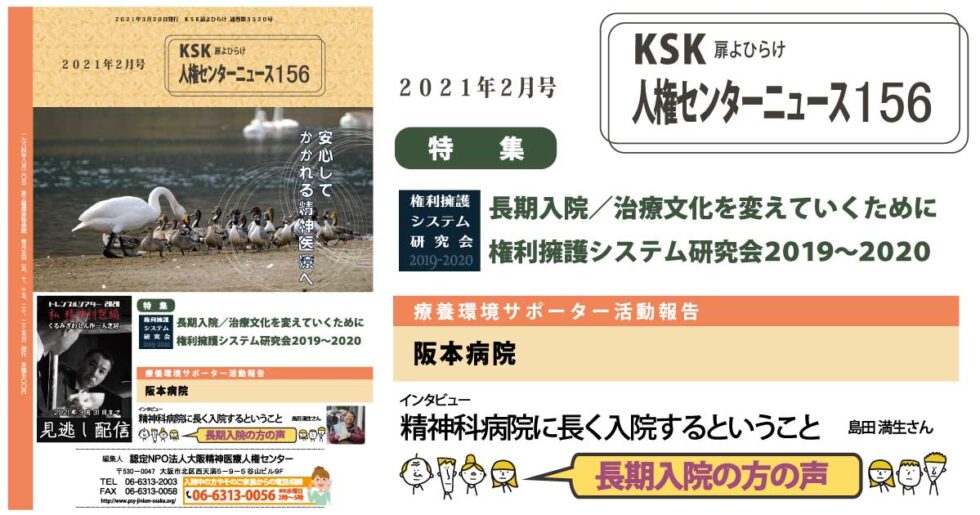 密室性の高い精神科病院の実態はなかなか外には伝わりません。大阪精神医療人権センターのみなさまが行う病院訪問や面会活動は精神科病院を見える化する貴重な活動です。大阪精神医療人権センターも国賠研もめざす方向に相通じるものがあるように思います。